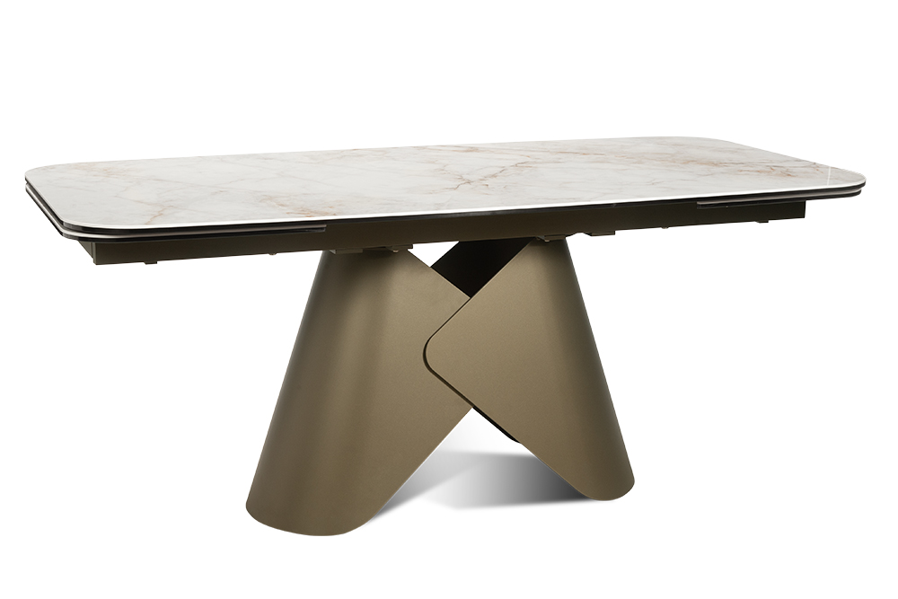 Привлекательность и функциональность сходятся в нашем обеденном столе MADRID 180 CALIFORNIA CER! Сочетание стильного дизайна и практичности делает его идеальным выбором для вашего обеденного пространства. Этот стол имеет размер 180 см, он легко трансформируется до внушительных 260 см, обеспечивая достаточно места для больших семейных посиделок или вечеринок с друзьями. Одним из ключевых преимуществ стола является его столешница из импортной глянцевой керамики в стильном молочном оттенке. Керамическая поверхность обладает высокой стойкостью к царапинам, ударам и температурным изменениям, что делает ее идеальным выбором для повседневного использования. Ножки бронзового цвета выполнены в уникальном стиле, придающем ему элегантный и современный вид, который гармонично впишется в любой интерьер.