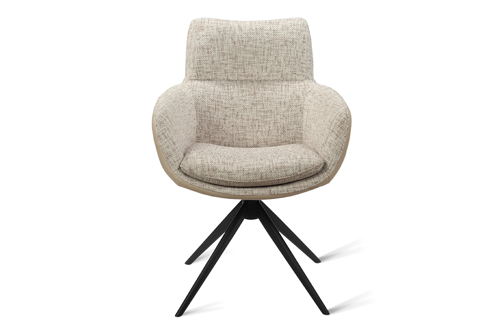 Стул-кресло B910 MAAS LIGHT CAP — сбалансированный дизайн, созданный для современного комфорта. Его мягкая округлая форма с возвратно-поворотным механизмом обеспечивает естественную поддержку и свободу движений, будь то обеденный стол, рабочий кабинет или зона отдыха. Комбинированная обивка сочетает практичность и стиль: контактные зоны выполнены из прочного, приятного шенилла цвета капучино, выдерживающего 50 000 циклов истирания, а вставки из мягкой экокожи бежевого цвета с текстурой под замшу добавляют тактильное благородство и облегчают уход. Лучеобразные ножки из черного металла завершают образ, придавая стулу визуальную лёгкость и стабильность. B910 MAAS LIGHT CAP — выбор для тех, кто ценит долговечность материалов, продуманную эргономику и эстетику. Это сиденье, которое прослужит годами, сохраняя свой уют и безупречный вид.